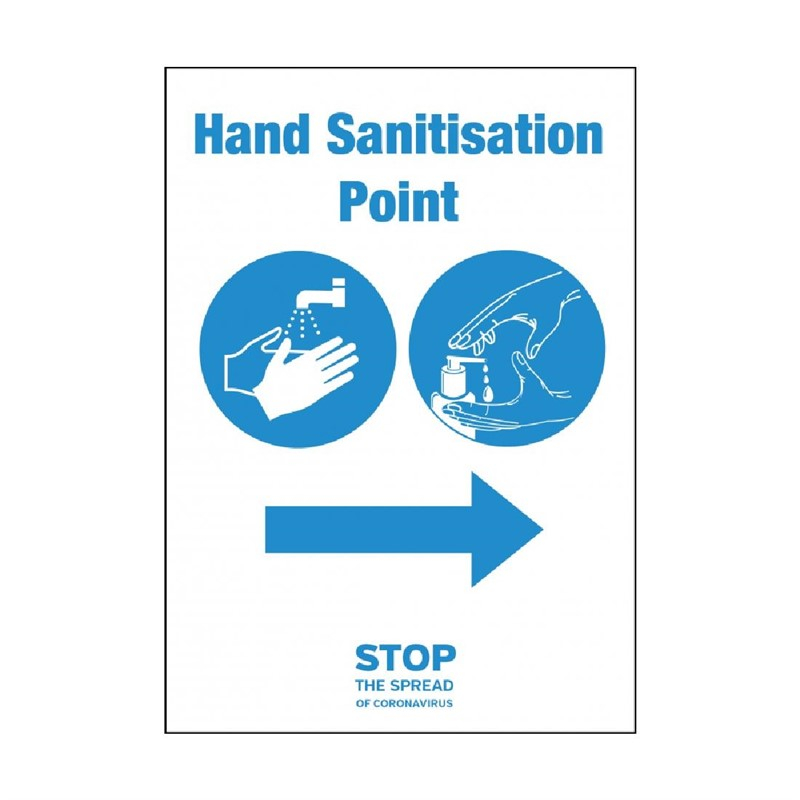 Zelfklevende Vinylsticker A5 'hier Handen Reinigen' - Rechtswijzende Pijl | FN847