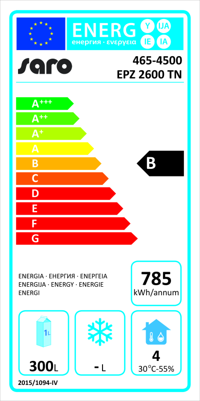 - Energie-efficiëntieklasse: B (spectrum A+++ tot E)