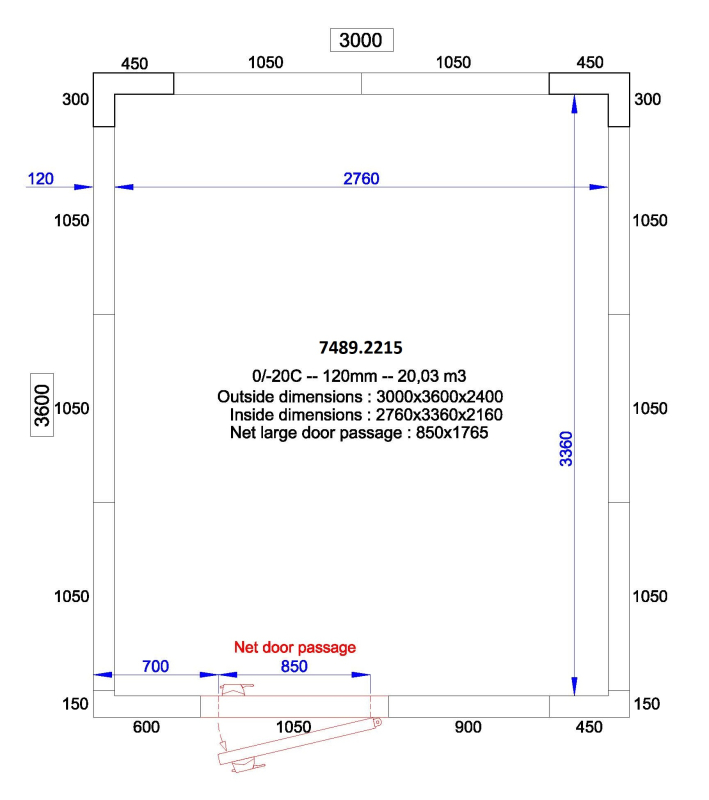 Koel/vriescel 3000x3600x2400 - 120 MM *transport OP Aanvraag* | 7489.2215