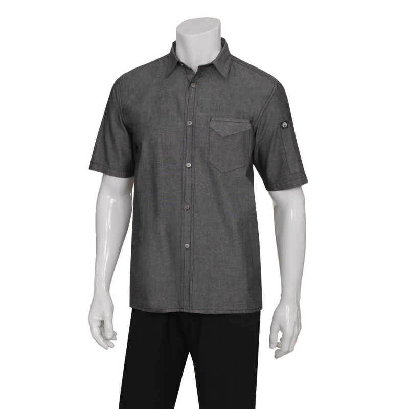 Chef Works Detroit Denim Shirt Korte Mouw Zwart Xxl | B075-XXL