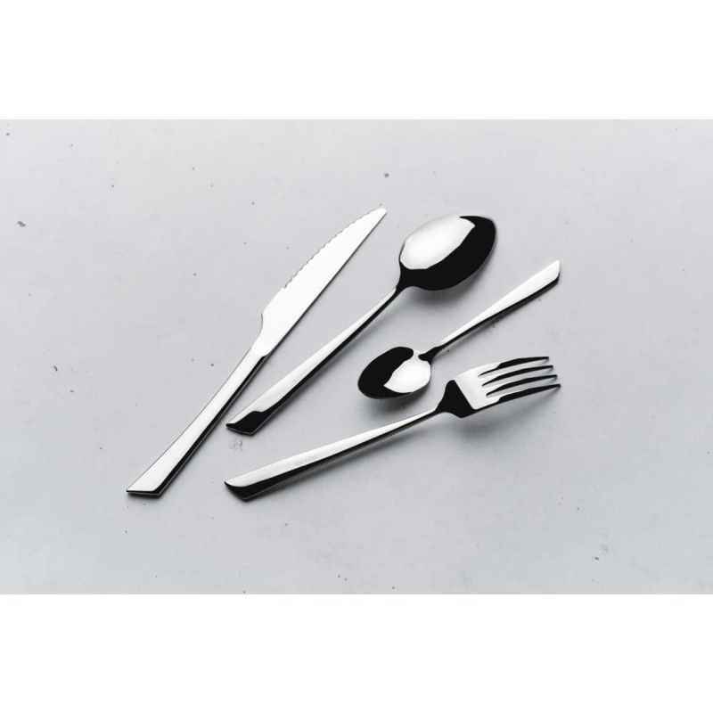 Gepolijst RVS 18/0 met een eigentijdse, robuuste vormgeving. Prijs en verpakking per 12 stuks.