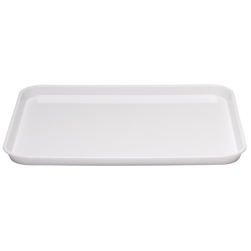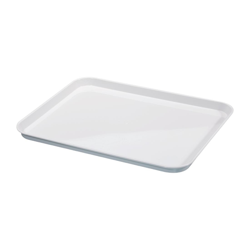 Dienbladen in mat wit Polystyreen of slagvast ABS. Beide materialen zijn voedselbestendig.
