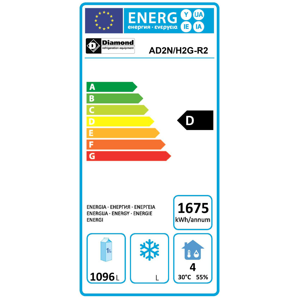 - "Diamond Green Technology" tot 70%* besparing. - Koelgroep "geschrankt", getropicaliseerd (43 °C). - CFK-vrije polyurethaan isolatie, 85 mm dik "super geïsoleerd". - Uitzonderlijke prestaties dankzij de homogene verdeling van de "laterale stroming" van de gekoelde lucht, waardoor een gelijkmatige temperatuur mogelijk is en een goede bewaring van de producten wordt gegarandeerd (in de koelkasten geen "droging van het voedsel"). - Voor delicate producten (bv. patisserie, gebak, enz.) is het mogelijk om de functie (in de microprocessor) te activeren. 2 niveaus van hygrometrische regeling. - Microprocessor voor regeling (onder gesloten kast, 100% waterdicht).
