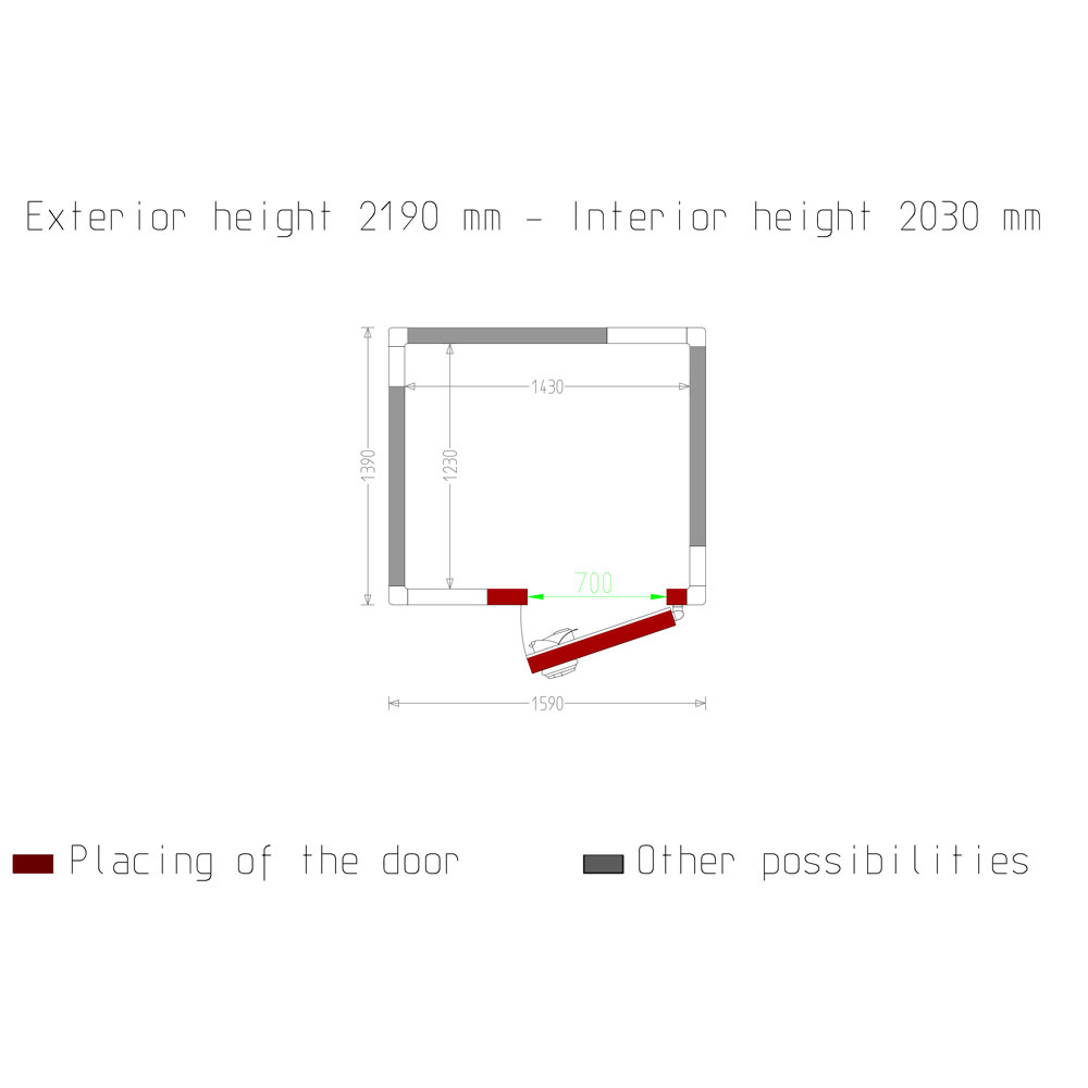 - Inwendige afmetingen 1430 x 1230 xh 2030 mm.