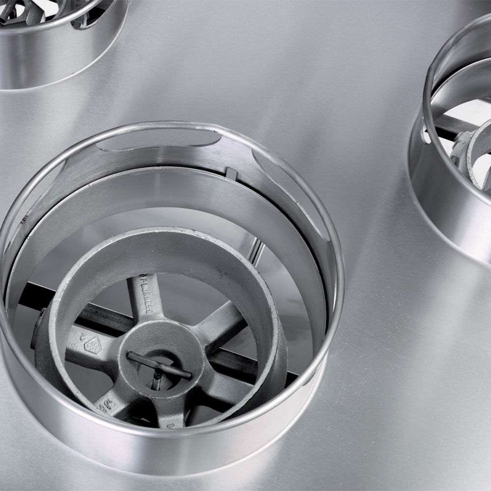 - Branders type wok 2x Ø 290 mm 21,44 kW and 1x Ø 230 mm 10,13 kW.