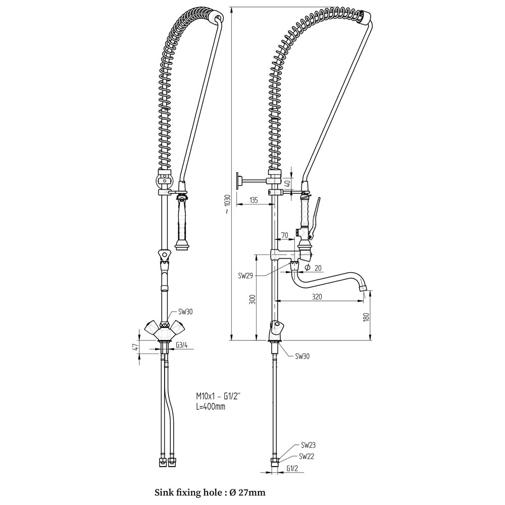 Sproeier en Kraan Met Mengkraangroep (uitgang Mono) | CW8003-MT
