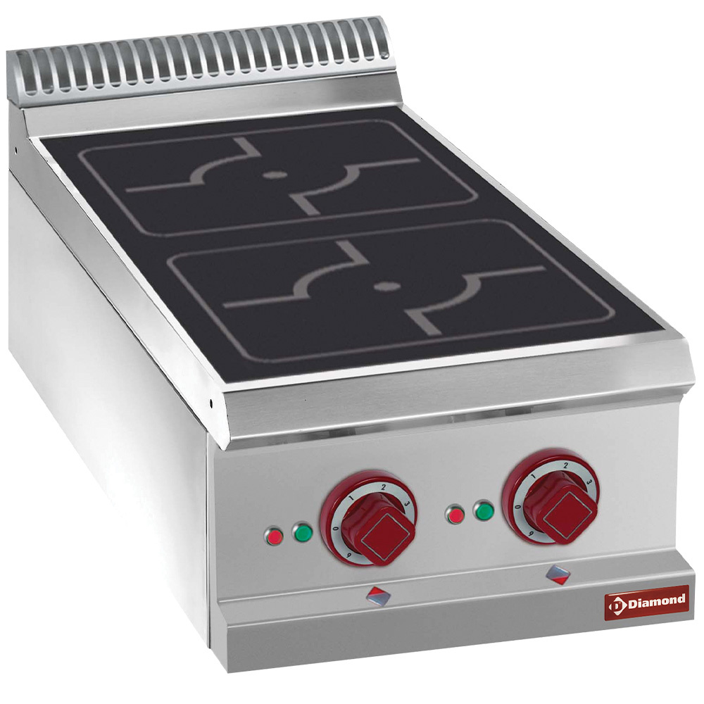 - 2 afzonderlijke kookzones Ø 220 mm (2x 3,5 kW).