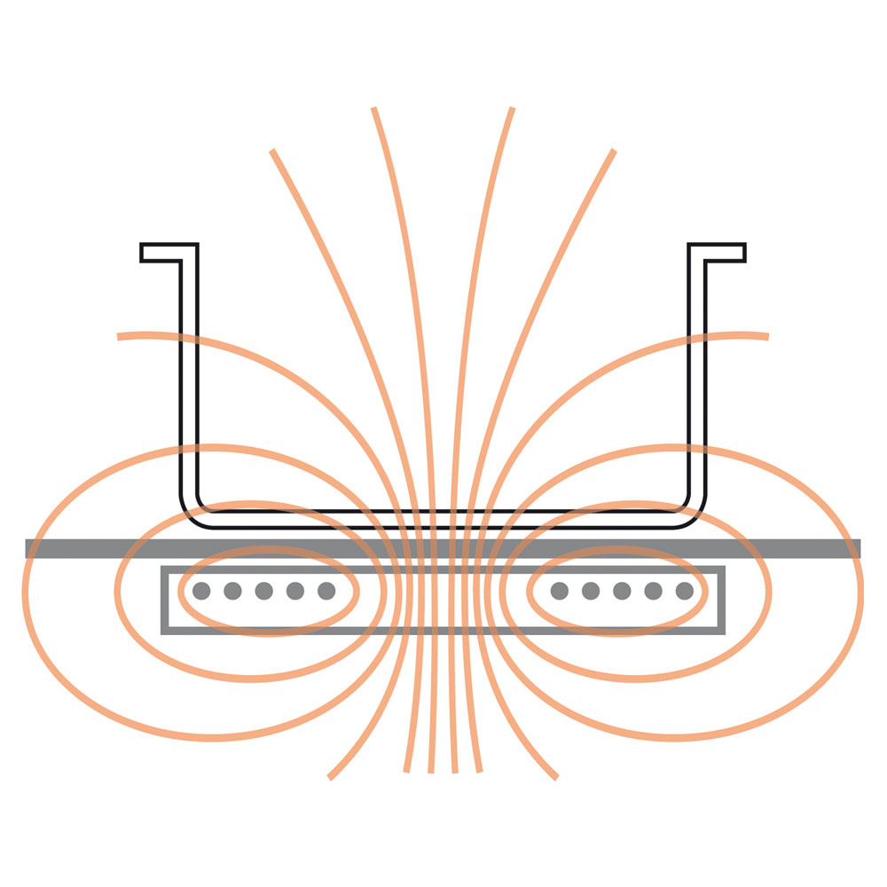 - INDUCTIEprincipe: Warmte wordt rechtstreeks door een magnetisch veld binnen de container geproduceerd, dit veld wordt elektronisch vervaardigd, er is geen verwarmingselement, waardoor het zeer veilig is. Er is vrijwel geen verlies van warmte; het is de meest kosteneffectieve technologie, het verwijderen van de houder kan het kookproces stoppen. Drie fysische verschijnselen aldus achtereenvolgens zijn betrokken: