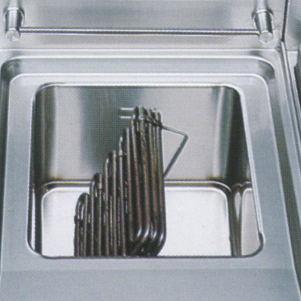 - Elektrische verwarming door gepantserde weerstanden in R.V.S., ondergedompeld in de kuip, kipbare weerstanden om de reiniging van de kuip te vergemakkelijken, temperatuurregeling van 100° en 190°C, per thermostaat, standaard veiligheidsthermostaat, frontale toegankelijkheid die een zeer eenvoudig onderhoud mogelijk maakt.