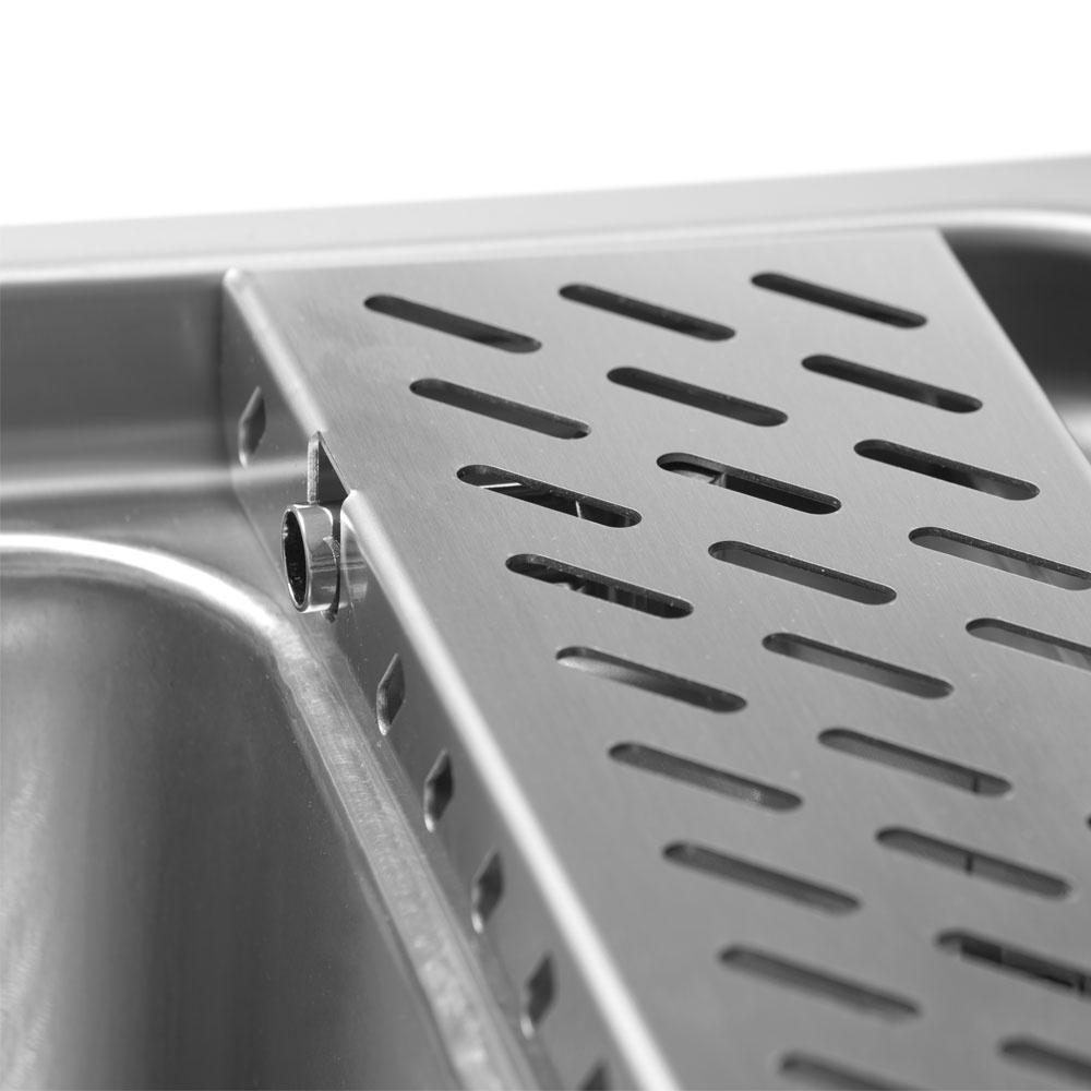 Mogelijkheid van rug aan rug 900+900 "BACK to BACK" of in combinatie met het gloednieuw gamma OPTIMA 700 900+700. Bovenblad in inox AISI 304 met een dikte van 20/10 mm , boord vooraan met waterkering, diepgetrokken en waterdichte werkbladen , binnenhoeken kuipen met afgeronde hoeken , kwaliteitsonderdelen ''High Technology '' ... Onberispelijke afwerking, met zorg voor detail , een subliem Design , en een perfecte en eenvoudige aflijning door middel van kop aan kop koppeling '' HEAD to HEAD ''.