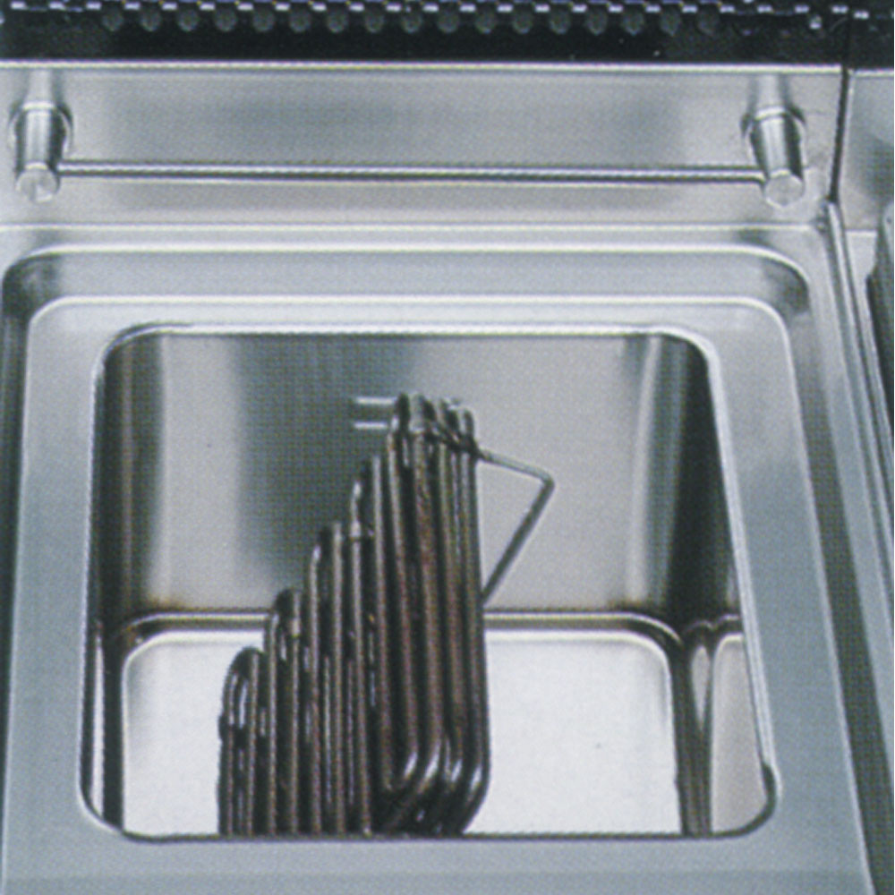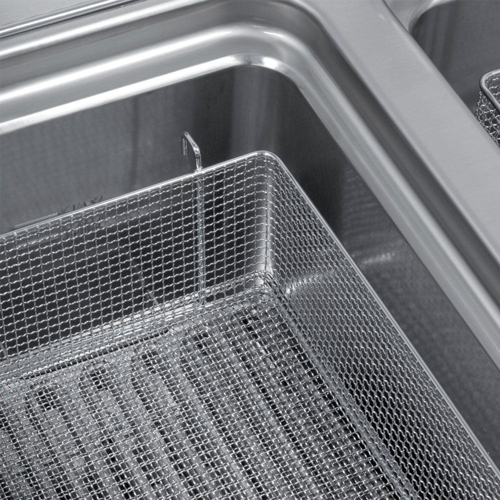 - Elektrische verwarming d.m.v. gepantserde weerstanden, in roestvrij staal, ondergedompeld in de kuip. Kipbare weerstanden voor een eenvoudige reiniging van de kuip, regeling van 100°C tot 180°C, standaard met veiligheidsthermostaat, toegankelijkheid aan de voorzijde voor een zeer eenvoudig onderhoud.