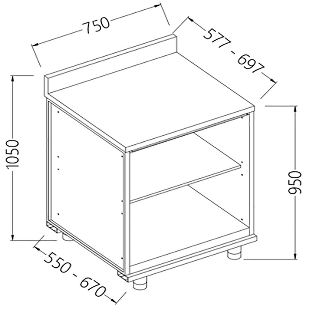 Neutraal "doorgeef" werktafelkasten met schuifdeuren