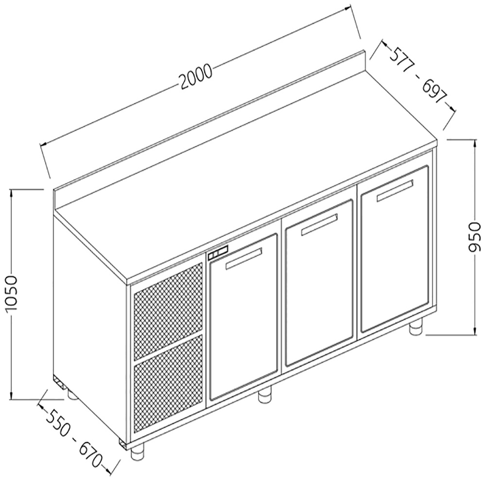 Neutraal "doorgeef" werktafelkasten met schuifdeuren