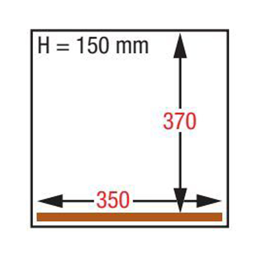 - Kamerafmetingen: 350x370xh150 mm (Dichtingslengte: 350mm).