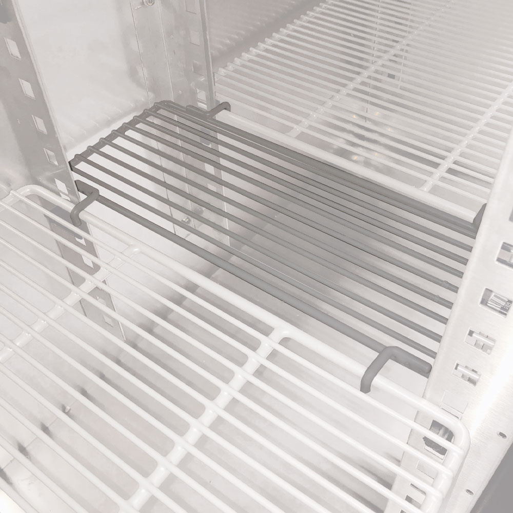 - 2 gerilsaniseerde roosters (450x430mm) per deur, regelbaar, 3 interieuropslag (staande flessen) vrije hoogte 737 mm.