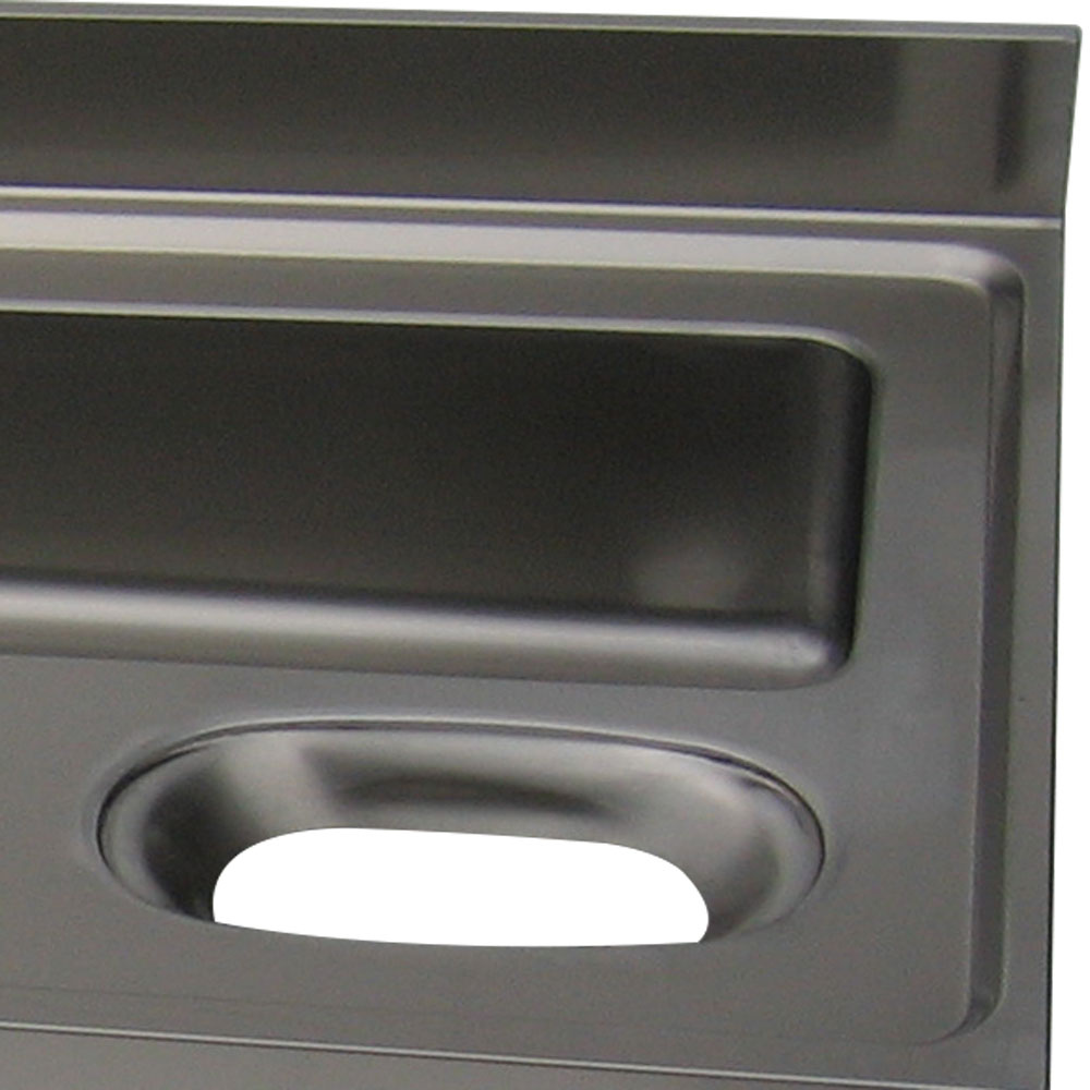 - Voorzien van een afvalopening. Opstaande muurboord achteraan.