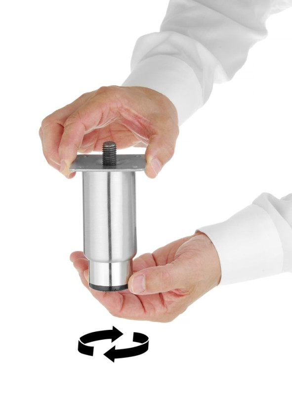 4 roestvast stalen poten, in hoogte aanpasbaar tot 60 mm.