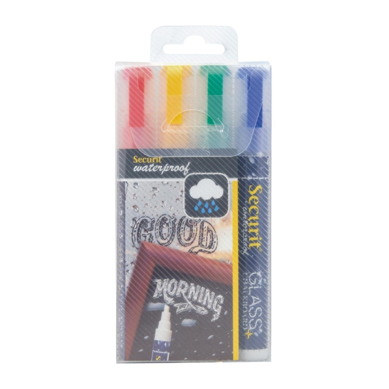 Securit Waterproof krijtstift (Glas+Krijtbord) in rood, groen, geel, blauw met 2-6mm punt (doos 4)