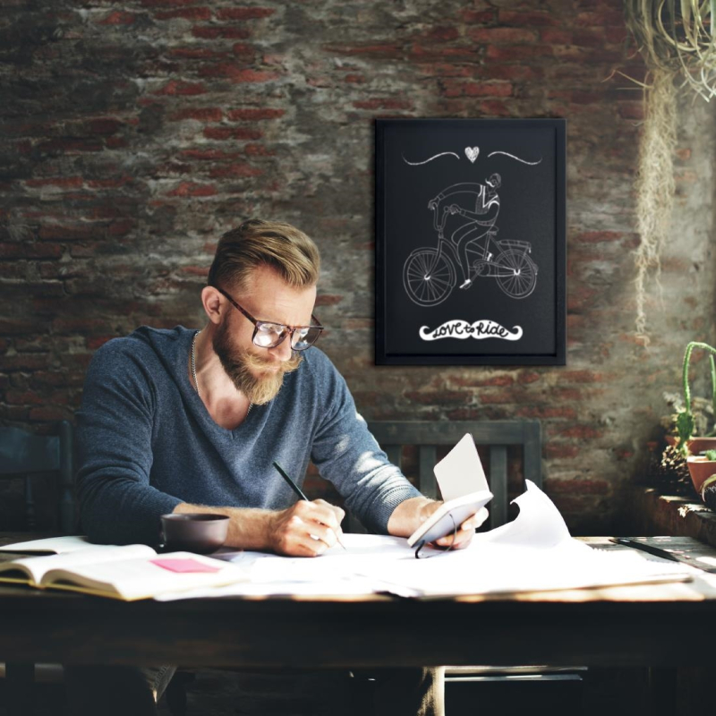 Deze wandplaat van 40x60 met een zwarte lijst in houten stijl wordt geleverd met bevestigingsmateriaal.