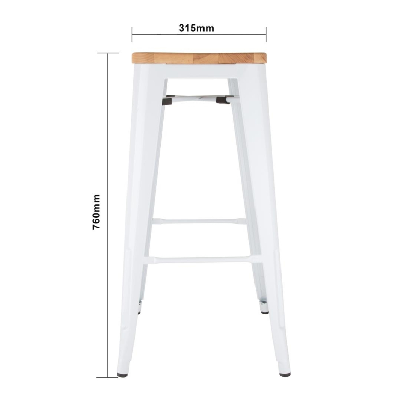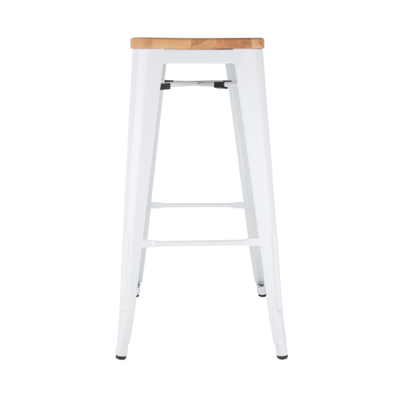 Bolero Bistro Hoge Krukken Met Houten Zitkussen Wit (4 Stuks) | DW739
