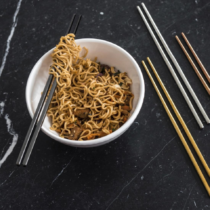 Deze eetstokjes zijn gemaakt van topkwaliteit 18/10 roestvrij staal, wat zorgt voor een duurzaam en robuust product.