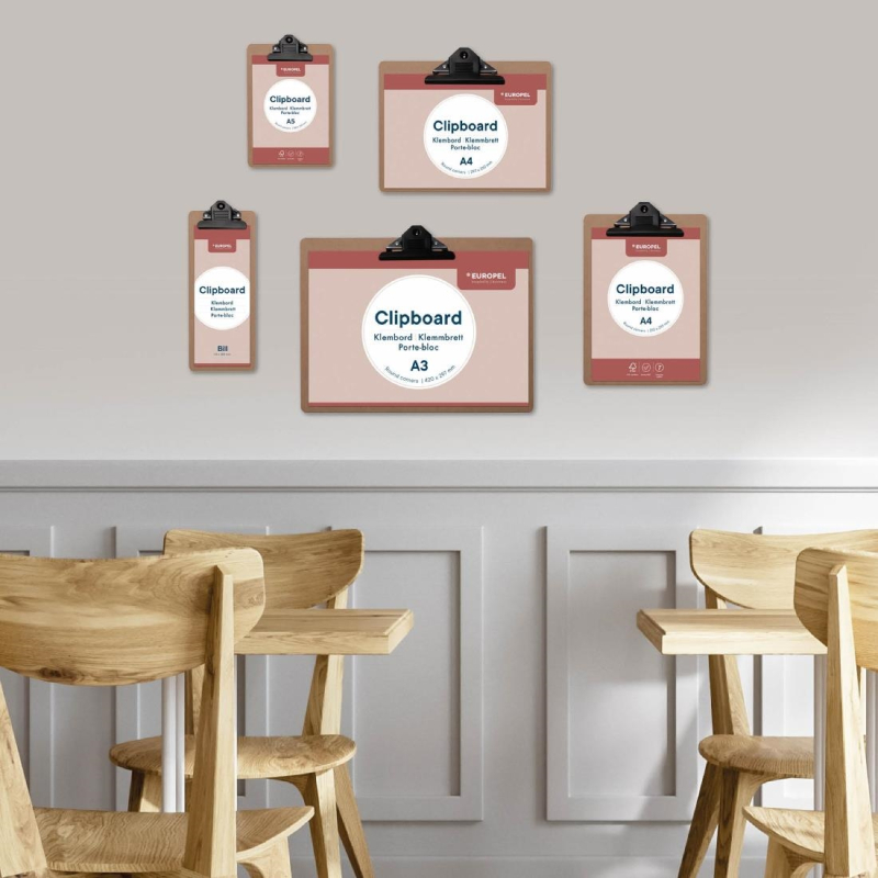 Premium kwaliteit garantie: Stevig MDF klembord met een natuurlijke uitstraling, een robuust MDF klembord met een natuurlijke uitstraling, 3mm dikte.