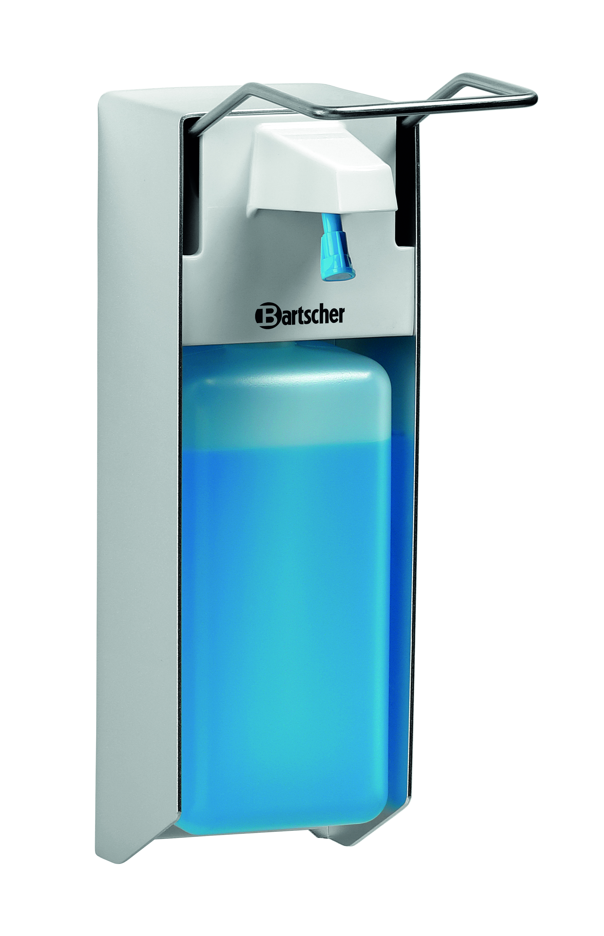 Snelle en eenvoudige handdesinfectie voor maximale bescherming. Of het nu gaat om keukens, laboratoria of openbare gebouwen – Met het patroonloze pompsysteem zorgt de dispenser met elleboogbediening voor optimale hygiënische omstandigheden.