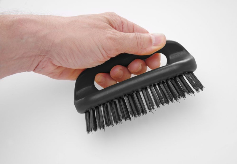 Comfortabele zwarte kunststof handgreep met stalen borstelharen.