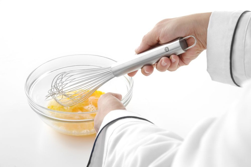 12 flexibele piano draden. Roestvast staal handvat met ophangoog.