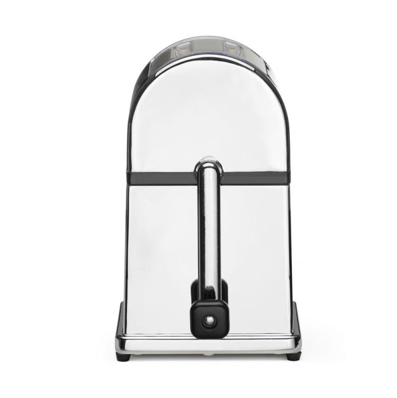 Verchroomde zink legering met roestvast stalen messen. Inclusief kunststof ijs schepje. Met uitneembare ijs container.