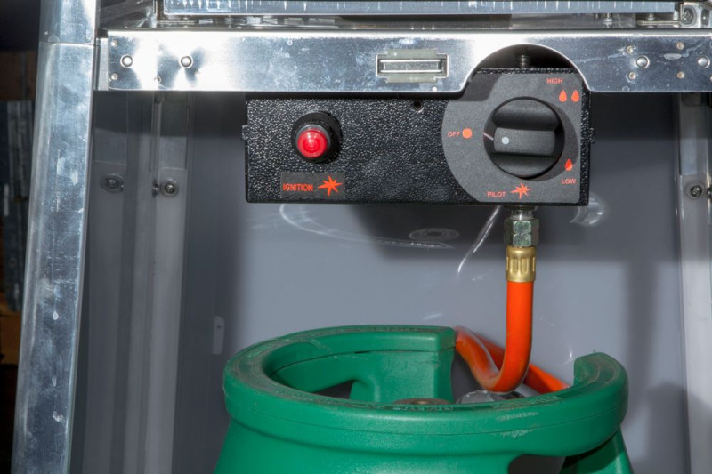 Verwarming via een echte vlam in glazen buis, sfeer verhogend. Behuizing uit aluminium met zwart metalen zijpanelen en kwarts glazen buis. De gasfles past in de behuizing. Inclusief elektrische ontsteking, gasslang en drukregelaar. Met omvalbeveiliging. Geschikt voor propaan- of butaangas.