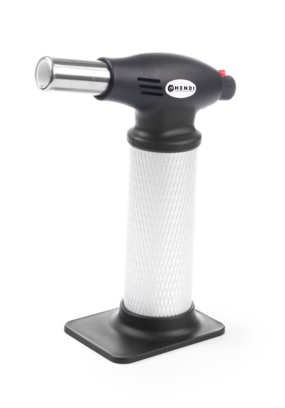 Gas, navulbaar - met automatische ontsteking. Brander wordt ongevuld geleverd. Compleet met standaard.