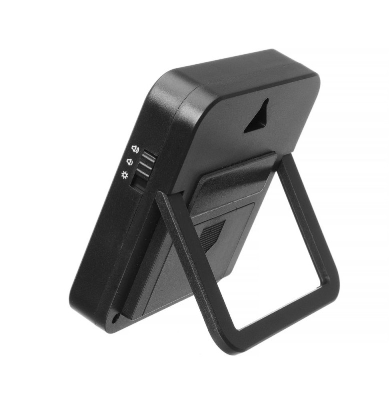 Behuizing gemaakt van ABS, met een uitklapbare standaard, een ophang oog en een magneet om op een metalen oppervlak te bevestigen. 3 alarmmodi: stil, medium, luid. Als de tijd is verstreken: – in elke modus knippert een rood lampje, – in matige en luide modi gaat het alarm af. Het licht- en geluidsalarm gaan na 1 minuut automatisch uit. Mogelijkheid om 2 onafhankelijke tijden in te stellen, waarbij de diode/het alarm na elke keer wordt uitgeschakeld. Max. ingestelde tijd: 100 min. met 1 sec. nauwkeurigheid. 2 functies: aftellen (99-0 min.), optellen (0-99 min.). Geheugenfunctie: de gebruiker kan de instelling voor elk van de 2 timers opslaan en met één druk op de knop inschakelen. Werkt op 3x AAA-batterijen – niet inbegrepen.