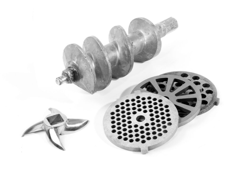 Ideaal voor kleine hoeveelheden en worsten maken, niet voor professioneel gebruik. Aluminium behuizing. Gietijzeren invoerbak met vleeshouder en stofdeksel. Stamper van plastic. Aluminium wormschroef en roestvast stalen mes. Inclusief 2 platen ø65,8 mm: 4 mm en 7 mm perforaties. 3 vultrechters voor worsten: ø12, 15 en 20 mm. Filet. Americain accessoire. Aan/uit/achteruit schakelaar. Niet voor continu gebruik. Gewicht 5,2 kg.