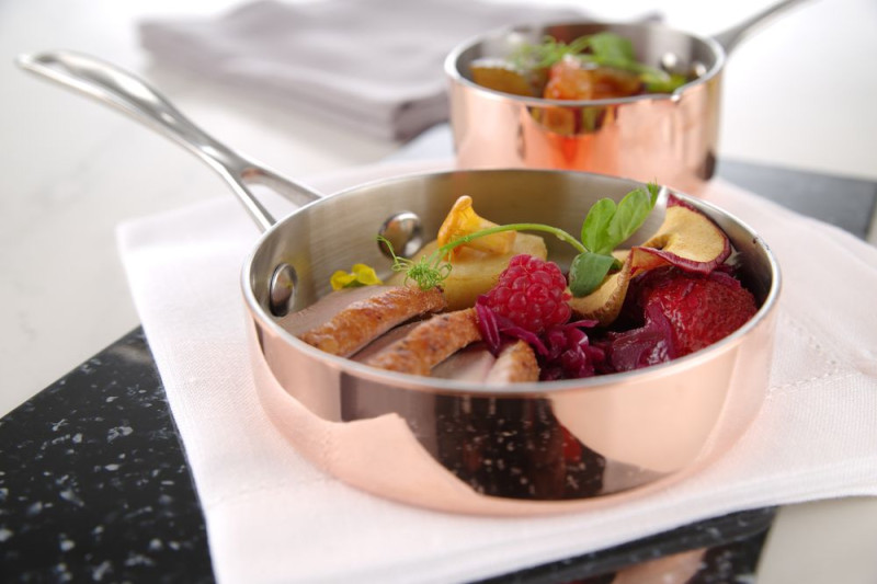 Gemaakt van 2,5 mm dik 3-ply materiaal, koper/aluminium/roestvast staal. Handgreep bevestigd met klinknagels.
