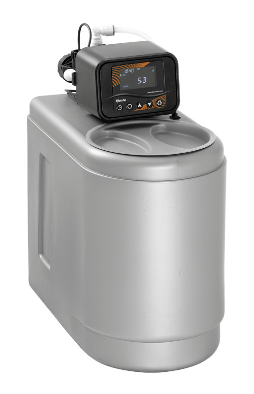 De wateronthardingsinstallatie reduceert de kalkvorming in commerciële vaatwassers en optimaliseert het wasresultaat door minder afzettingen van verharders op et vaatwerk. Dankzij het zachtere water wordt het verbruik van reinigingsmiddelen geminimaliseerd. Het akoestische signaal wijst betrouwbaar op een gering vulniveau van het zoutreservoir.