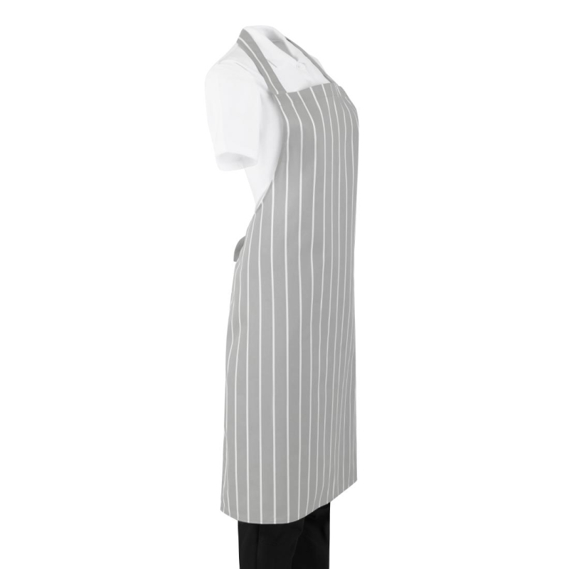 In een stijlvol grijs en wit ontwerp combineert de gestreepte slagersschort van Whites mode met functionaliteit, waardoor het perfect is voor professionele keukenomgevingen. Ontworpen voor duurzaamheid en gemak, heeft de schort een klassieke pasvorm die je comfortabel houdt tijdens lange diensten, terwijl de volledige bibvorm effectief je witten beschermt tegen spetters en vlekken - perfect om je een verzorgde uitstraling te laten behouden. Bovendien is het geschikt voor commerciële wasserij, wat zorgt voor snelle en gemakkelijke reiniging.
